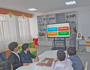 6 февраля по проекту «Вечерняя библиотека» состоялся поэтический вечер «Жырлайды жүрек», посвящённый 95-летию со дня рождения поэта Мукагали Макатаева. В мероприятии приняли участие учащиеся 7 «Б» класса средней общеобразовательной школы №25. Библиотекарь рассказала о жизни и творчестве поэта и продемонстрировала видеоматериал. Школьники выразительно читали стихи Мукагали Макатаева. Также участники ознакомились с книжной выставкой. В завершение вечера была проведена викторина.